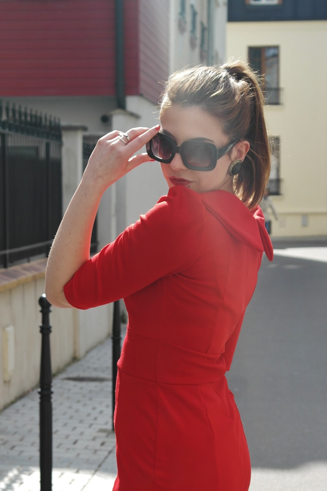 Cette robe rouge est toute nouvelle dans ma garde robe. Elle est rétro et classe, chic mais portable partout et elle me donne terriblement envie d’être amoureuse. Bien oui quoi, le rouge amour, c’est bien connu (ou le rouge passion, comme vous voulez)!